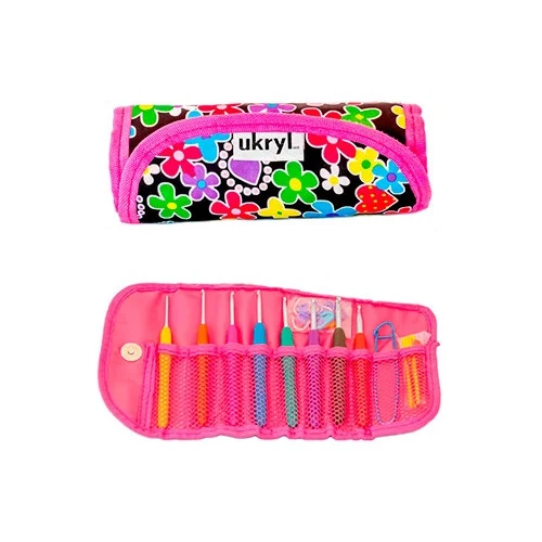 Inicio Costura Tejido Set estuche tela 8 crochet, aguja lana y toma punto.